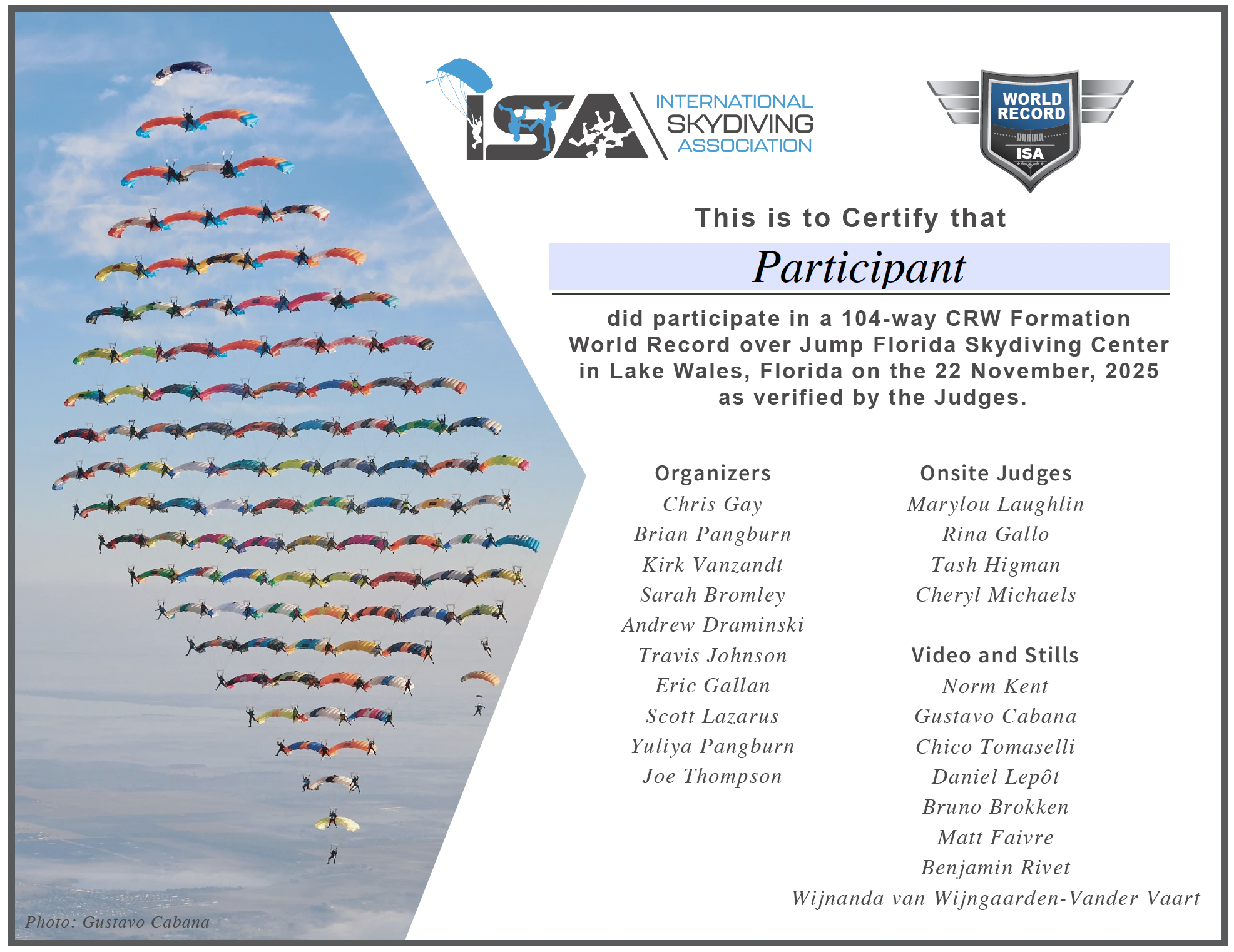 CF jumpers from the US and one from Canada did Full Break 2- and 3-point 25-ways in November. Those were World records in that category. The event was held in Lake Wales, Fl and Chris Gay was organizing.